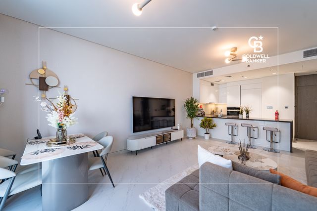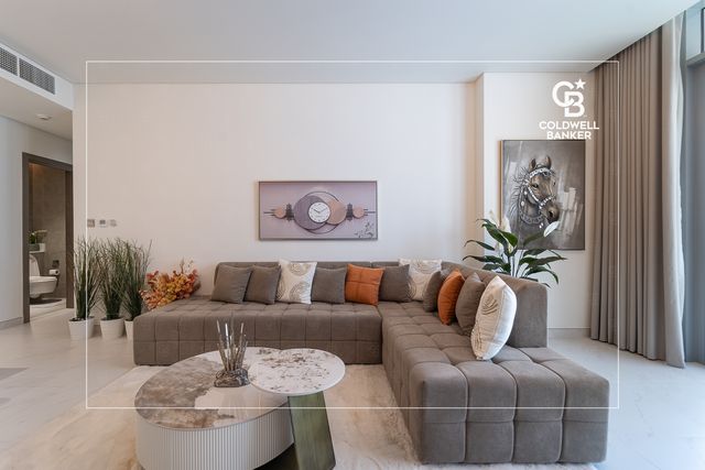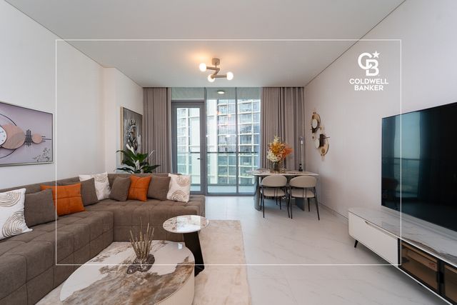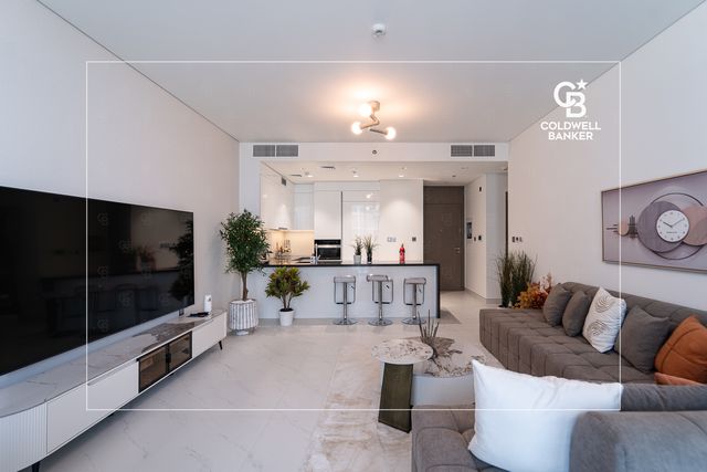 Coldwell Banker presents this beautifully furnished 2-bedroom apartment, perfectly situated in the prestigious District One Phase III – Residences 13. Spanning 1,192 sq. ft., this elegant home showcases a refined interior designed for modern comfort.