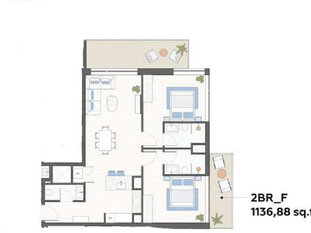 Spanning 1140.75 sqft the apartment features an open kitchen fitted with European appliances, a bright living and dining area, and 2 ensuite bedrooms with built-in closets. Additional highlights include a powder room, laundry room, and two private balconies overlooking the pool, perfect for relaxation or entertaining.