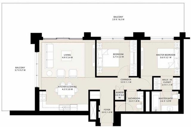 - 2 Bedrooms