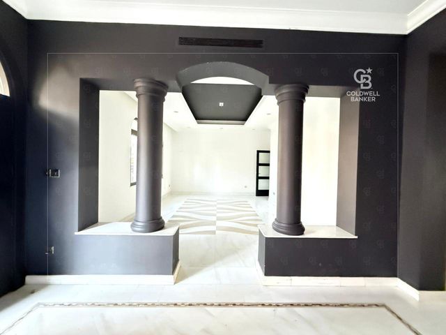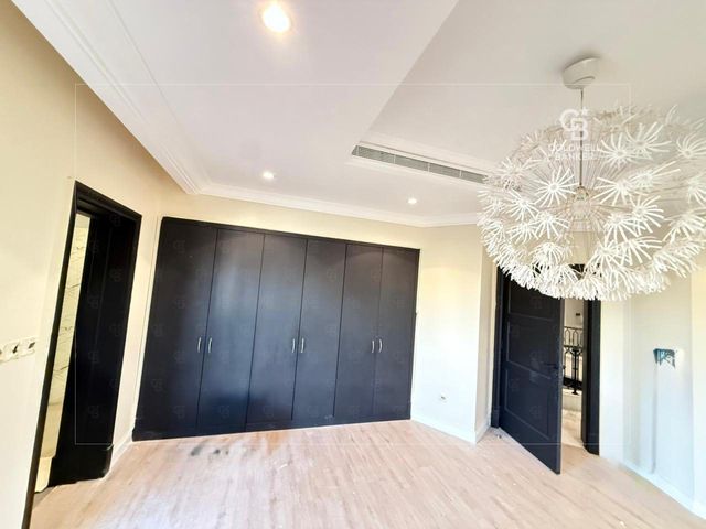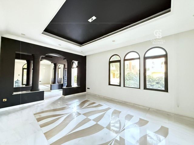 The villa features six generously sized bedrooms, all designed for comfort and privacy, with built-in wardrobes and en-suite bathrooms. Expansive living and dining areas are filled with natural light and open onto the outdoor space, creating a seamless indoor-outdoor living experience.