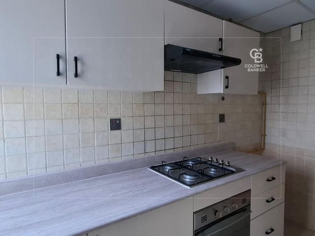 A short corridor leads to a guest powder room and an ample semi-fitted kitchen, finished in contemporary tones and benefiting from excellent natural light and ample storage space.