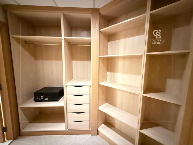 Both bedrooms are generously sized with built-in wardrobes, and the master bedroom enjoys a private en-suite bathroom and spectacular views. The additional maid’s room adds convenience and extra storage or living space.