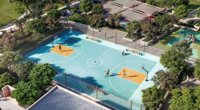 - Sports courts and shaded outdoor leisure zones