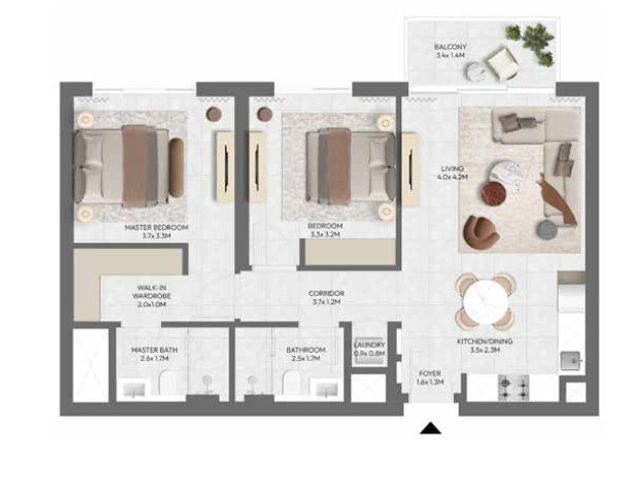 - Well-proportioned 2-bedroom layout with a focus on comfort and functionality