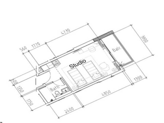 - Hotel studio apartment - 354.78 sq.ft.